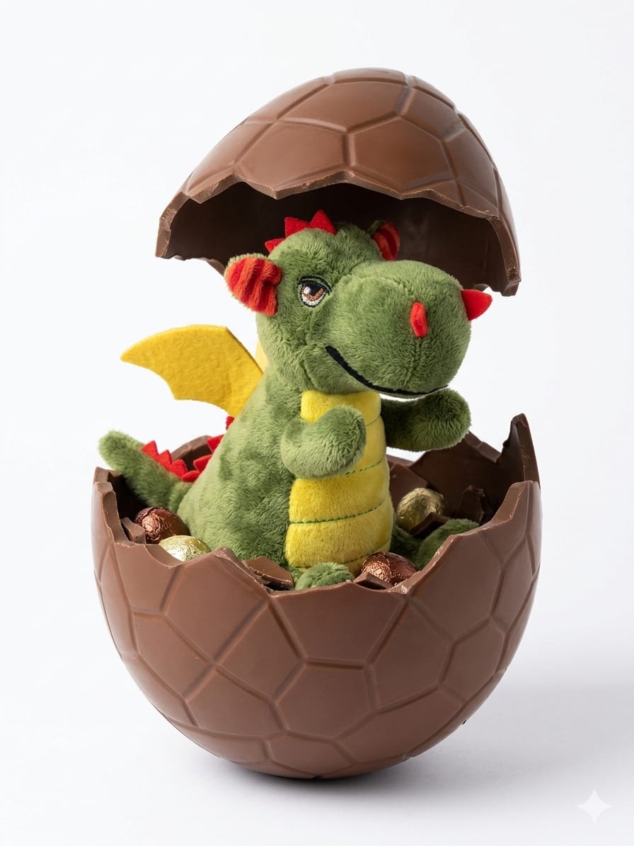 Huevo de chocolate con leche Xocomon y peluche de dragón de st Jordi dentro!